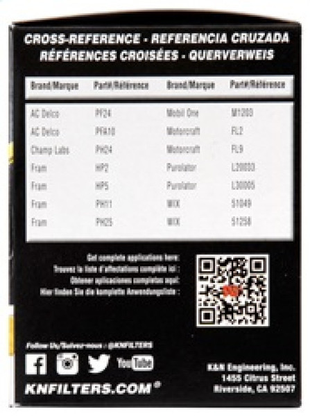 K&N premium oil filters are meticulously engineered to offer outstanding filtration and engine protection. Designed to operate with all synthetic, conventional, and blended motor oils, K&N's pleated synthetic-blend filtration media helps to shield your engine from contaminants and ensure a consistent flow of oil. The heavy-duty canister is engineered to be exceptionally durable, and a one-inch welded hex nut can be used for quick and easy filter removal. Each filter is specifically designed to withstand the service intervals recommended by vehicle manufacturers, and is protected by the K&N 1-Year Limited Warranty.