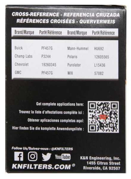 K&N Cartridge Oil Filters are designed to satisfy the needs of racers and engine builders as well as the average vehicle owner who wants the best oil filter available. K&N cartridge oil filters trap harmful contaminants while the filter's construction allows for high oil flow rates. All K&N oil filters are manufactured to meet stringent engineering standards. They are covered by a limited warranty to be free from defects in materials and workmanship when installed and replaced using engine and equipment manufacturer's recommended service intervals.