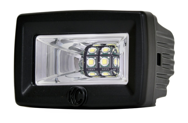 FEATURES-20W 2in. C2 LED Area Flood Light-Durable Diecast 6063 Aluminum Housing-UV Resistant Black Powder Coated Housing-Dual Oversized Heat Sink Design for Cooler; Brighter and Longer Lasting LED Performance-Gore Military Grade Breather Membrane to prevent condensation and entry of dust/contaminants-Optically Clear and Shatter Proof Lexan Lens-Ideal for Illuminating Immediate Areas as a Scene; Work or Effective Flood light-120 Scene Beam Pattern For Evenly Distributed Lighting LIGHT PERFORMANCE(PER LIGHT)-RAW Lumens: 2;200 lm-LUX @ 10 meters: 27 lx-Candela: 2;700 cd-Beam Distance (Meters): 104m SPECIFICATIONS(PER LIGHT)-Wattage: 10W-LED Source: CREE XMK-LED Color: 6000K-Amp Draw: 1.6A-Voltage: 9V-36V-IP Rating: IP69K-Product Dimensions: W-2.85in. x H-2.21/1.91in. x D-2.17in. OPTICAL PERFORMANCE AND LED EFFICIENCY KC s C2 utilizes ultra wide 120 degree flood reflector optics to provide smooth and evenly distributed light across a horizontal field of vision. This light is ideal for illuminating immediate areas as a work or scene light; dramatically improving night time safety and visibility. DURABLE CONSTRUCTION FOR RELIABLE LIGHT PERFORMANCE Constructed from a lightweight military grade (US MIL-810-STD) IP69K rated sealed Aluminum Die-Cast Housing with shatter proof GE Lexan lens for an impenetrable; waterproof housing.The C2 scene light was built to last; utilizing advanced Dual Heat-Sink design for maximum heat dissipation to ensure optimum light performance for up to 50;000 hours.