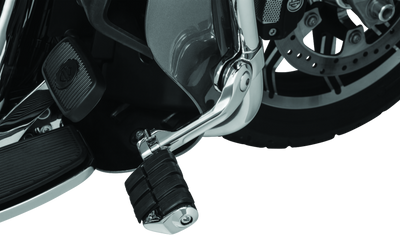 Kuryakyn's classy chrome and rubber clamshell design Shift Peg Covers replace the drab rubber OEM shift pegs pads.