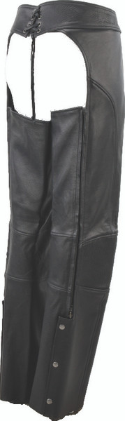 Medium weight chaps with that traditional look and updated features. The Sierra features leather facings with powerstretch gussets at the inner top thigh, back, waist and knees. A zippered outseam with snap closures and heavy-duty eylets with lacing at center back ensure a comfortable fit.