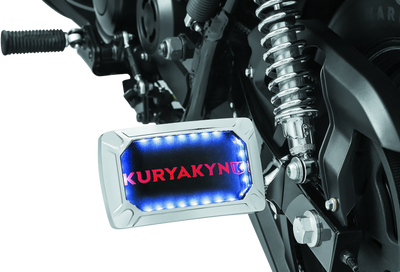 Offers full coverage for the license plate and complements Tri Glide trunks. Utilizes factory plate illumination and features durable aluminum construction with foam backing to eliminate rattling and scratching the trunk surface.