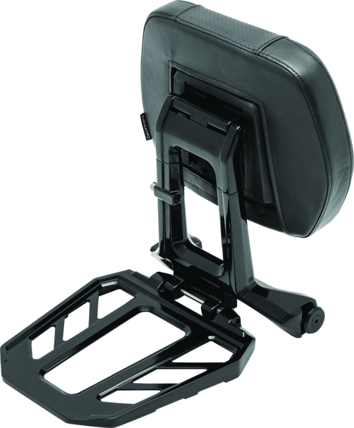 A truly multi-purpose backrest and luggage rack system only available from Kuryakyn. Once installed you can make any adjustments needed, including switching from rider to passenger backrest, without any tools. Sturdy aluminum main frame, steel folding luggage rack with rubber inserts and comfortably padded backrest. Backrest pad is fully adjustable via stainless sliding rods with push-button locks and knurled threaded knobs.