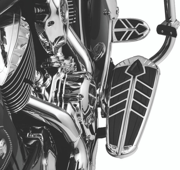 These minimalist toe rest mounts attach directly to the engine guard to allow positioning of the operator's heel on the floorboard with the front of the foot resting just behind the engine guard for a comfortable cruising option.