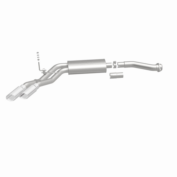 The MagnaFlow 2011-2014 Ford F-150 Street Series Cat-Back Performance Exhaust System 15101 brings out the personality of your 5.0L 2011-2014 Ford F-150 with our signature resonant, powerful engine tone and dyno-proven performance. Thanks to its fast-flowing, mandrel bent 3in. main piping and 1 Straight-Through mufflers ending in a Dual Same Side Before Passenger Rear Tire exit with 3.5in. Polished Welded-On Double Wall Angle Cut Folded Edge tips, this Ford F-150 exhaust kit has the performance chops to match its sporty sound and appearance. Upgrade your ride to the next level with an exhaust that has the pipes to put other Ford F-150's to shame. With this system your vehicle will be producing Very Aggressive exterior and Aggressive interior sound levels while leaving other cars and trucks feeling envious at every stoplight. Exhaust kit 15101 features a cat-back layout that replaces your ride's stock exhaust components from near the catalytic converter on back. Extensive 3D scanning during development has resulted in a direct-fit design that you can easily install yourself. 15101 is produced using CNC precision robotic manufacturing techniques and is backed by MagnaFlow's 1-year limited finish warranty and limited lifetime construction warranty.