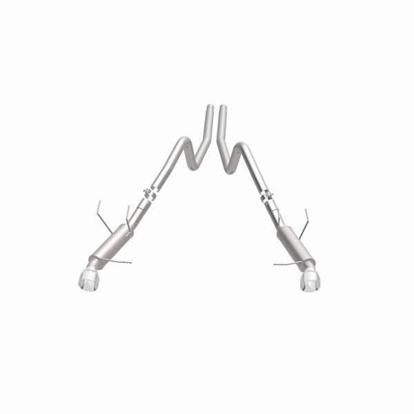 The MagnaFlow 2014 Ford Mustang Competition Series Cat-Back Performance Exhaust System 15245 brings an aggressive, attention-grabbing edge to the deep resonant exhaust note we're so well known for. This exhaust kit is designed to enhance your 3.7L 2014-2014 Ford Mustang with dyno-proven performance made possible thanks to fast-flowing mandrel bent 2.5in. main piping and 2 Straight-Through mufflers ending in a Dual Split Rear exit with 4.5in. Polished Welded-On Double Wall Angle Cut Folded Edge tips featuring a sporty finish. The exhaust system's cat-back layout replaces your ride's exhaust system from near the catalytic converter on back. Exhaust system 15245 is engineered to make your vehicle's engine produce Aggressive exterior and Moderate interior sound levels, befitting its competition-oriented design. 15245's direct-fit design makes installation a breeze thanks to the use of advanced 3D scanning techniques. This performance exhaust system is made of 100% durable and corrosion-resistant stainless steel and produced using CNC precision robotic manufacturing, all backed by MagnaFlow's limited lifetime warranty. Please check to ensure compliance with local noise regulations.