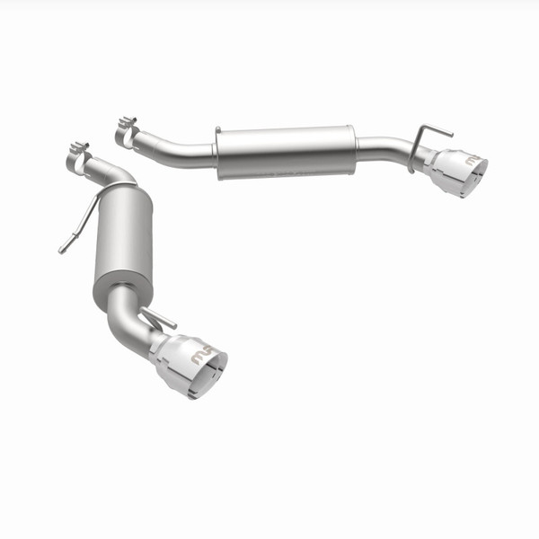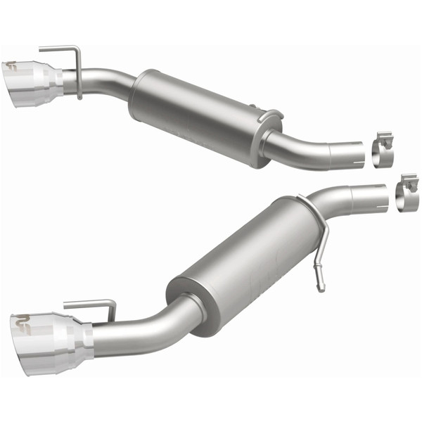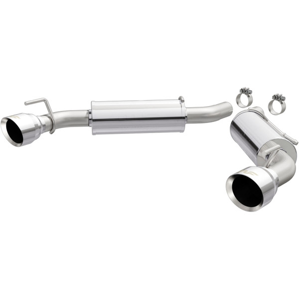 The MagnaFlow 2016-2024 Chevrolet Camaro Competition Series Axle-Back Performance Exhaust System 19332 brings an aggressive, attention-grabbing edge to the deep resonant exhaust note we're so well known for. This exhaust kit is designed to enhance your 3.6L 2016-2024 Chevrolet Camaro with dyno-proven performance made possible thanks to fast-flowing mandrel bent 2.5in. main piping and 2 Straight-Through mufflers ending in a Dual Split Rear exit with 4.5in. Polished Welded-On Double Wall Angle Cut Folded Edge tips featuring a sporty finish. The exhaust system's axle-back layout replaces your ride's exhaust system from near the rear axle on back. Exhaust system 19332 is engineered to make your vehicle's engine produce Aggressive exterior and Moderate interior sound levels, befitting its competition-oriented design. 19332's direct-fit design makes installation a breeze thanks to the use of advanced 3D scanning techniques. This performance exhaust system is made of 100% durable and corrosion-resistant stainless steel and produced using CNC precision robotic manufacturing, all backed by MagnaFlow's limited lifetime warranty. Please check to ensure compliance with local noise regulations.