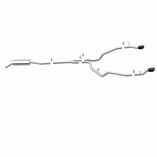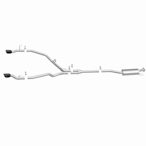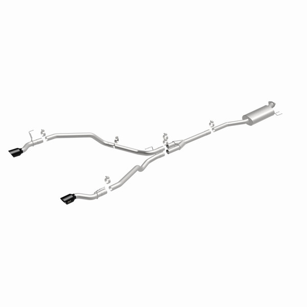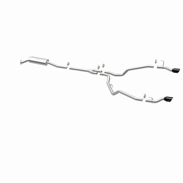 The MagnaFlow Honda Ridgeline NEO Series Cat-Back Performance Exhaust System #19633 adds a healthy serving of dyno-proven performance and a modern, aggressive exhaust note to your 2021-2024 Honda Ridgeline equipped with the 3.5L engine option. This exhaust kit is designed to replace all OEM exhaust components from near the catalytic converter on back. Bystanders will know something is up when your truck pulls away from the rest of the vehicles at each stoplight with a quick launch and a triumphant roar, leaving everyone else in its wake. This increase in performance is made possible by the redesigned exhaust, which features 2.5” mandrel bent main piping that passes through an 18” oval straight through muffler before smoothly transitioning via a Y-pipe to a single-to-dual split rear exit with 4” double wall, angle-cut and logo etched tips finished in black chrome. #19633 is made of durable, corrosion resistant stainless steel and produced using advanced CNC precision robotic manufacturing techniques for an OEM-like, easy to install direct-fit design. MagnaFlow stands by this Honda Ridgeline performance exhaust with our limited lifetime construction warranty.