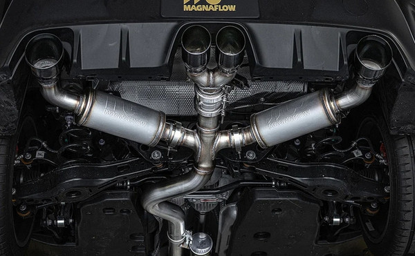 The MagnaFlow Toyota GR Corolla NEO Series Cat-Back Performance Exhaust System #19631 turns your ultimate sporty compact into a JDM-like beast that stays at the head of the pack thanks to its modern take on MagnaFlow’s signature sound and renowned dyno-proven power gains. This 2023-2025 GR Corolla exhaust kit represents an all-around performance improvement for your GR’s 1.6L without compromises, even going so far as to retain your OEM vehicle’s factory controllable exhaust valve option using MagnaFlow’s own cast 304 stainless steel valves. Additionally, #19631 seamlessly integrates MagnaFlow’s No Drone Technology (NDT) to ensure optimal driver enjoyment, free of any unwanted droning noises that can otherwise occur at cruising speeds. Exhaust kit #19631 features 3” mandrel bent main piping that passes through an 11” NDT tuned chamber, smooth Y-pipe transition and two 11” straight-through performance mufflers before terminating in a quad center split rear exit with 4.5” outer and 3.375” inner tips featuring a double wall, angle-cut logo etched design with a black chrome finish. This performance exhaust features an easy-to-install, direct-fit design that is engineered to replace all OEM exhaust components from near the catalytic converter on back. #19631 is made of durable, corrosion resistant stainless steel and produced using advanced CNC precision robotic manufacturing techniques, all backed by MagnaFlow’s limited lifetime warranty.