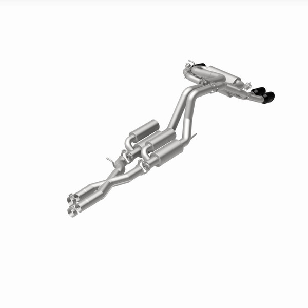 The MagnaFlow Jeep Wrangler 392 Street Series Cat-Back Performance Exhaust System #19598 brings the latest evolution in exhaust sound and dyno-proven performance to your already capable 2021-2024 Jeep Wrangler 392. The 3” main tubing of exhaust kit #19598 flows through dual free flowing straight through mufflers and NDT (No Drone Technology) resonators before terminating in a quad rear exit with 4” black chrome tips. #19598 is tuned to produce a powerful, resonant performance exhaust tone while maintaining moderate interior sound levels. The integrated NDT technology keeps unwanted droning noises in check at lower engine speeds such as when cruising on the highway. This Jeep Wrangler 392 exhaust system is made of durable, corrosion resistant stainless steel and is produced using advanced CNC precision robotic manufacturing techniques that enable #19598 to feature a direct-fit design that you can install yourself. MagnaFlow stands by this performance exhaust kit with our 1-year finish warranty and limited lifetime construction warranty.