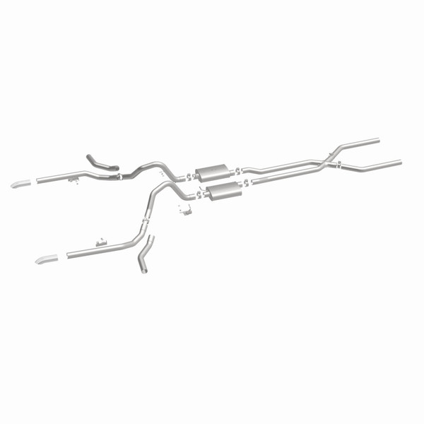 The MagnaFlow 1965-1969 Chevrolet Impala Street Series Crossmember-Back Performance Exhaust System 15165 brings enhanced engine sound and dyno-proven performance to your 3.8L, 4.1L, 4.6L, 5.0L, 5.3L, 5.4L, 5.7L, 6.5L, 6.7L, 7.0L 1965-1969 Chevrolet Impala with a healthy helping of our deep, resonant signature exhaust note at Moderate exterior and Mild interior sound levels. Thanks to its durable, corrosion resistant stainless steel design, this Chevrolet Impala exhaust system will handle whatever tarmac you decide to leave your mark on. This performance exhaust kit features a crossmember-back layout designed to replace your Chevrolet Impala's exhaust system from the crossmember on back. With its fast-flowing, mandrel bent 2.5in. main piping and 2 Straight-Through mufflers ending in a Multiple Exit Options exit with 2.5in. Polished Weld-On Single Wall Turndown Cut Edge tips, your muscle car will be sounding as awesome as it looks. Extensive 3D scanning during development has resulted in a direct-fit design that you can easily install yourself. 15165 is produced using CNC precision robotic manufacturing techniques and is backed by MagnaFlow's limited lifetime construction warranty.