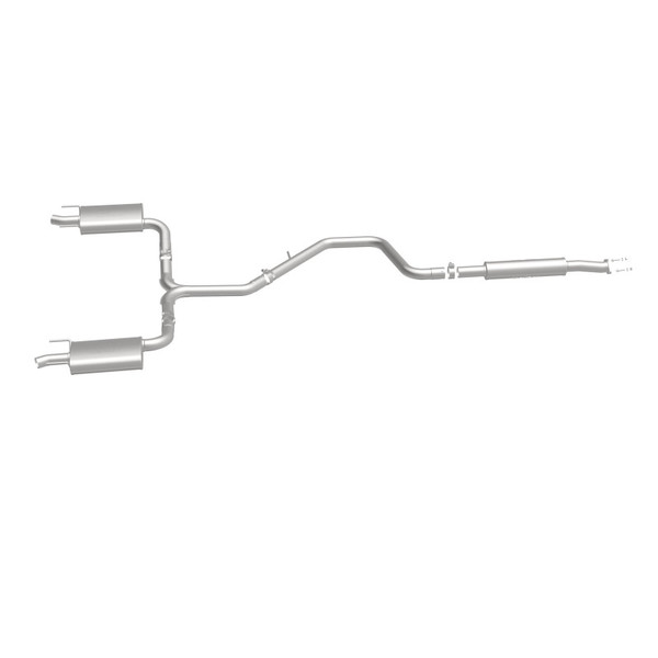 The MagnaFlow 2014-2020 Chevrolet Impala Street Series Cat-Back Performance Exhaust System 19023 brings out the personality of your 3.6L 2014-2020 Chevrolet Impala with our signature resonant, powerful engine tone and dyno-proven performance. Thanks to its fast-flowing, mandrel bent 2.5in. main piping and 3 Straight-Through mufflers ending in a Dual Split Rear exit, this Chevrolet Impala exhaust kit has the performance chops to match its sporty sound and appearance. Upgrade your ride to the next level with an exhaust that has the pipes to put other Chevrolet Impala's to shame. With this system your vehicle will be producing Moderate exterior and Mild interior sound levels while leaving other cars and trucks feeling envious at every stoplight. Exhaust kit 19023 features a cat-back layout that replaces your ride's stock exhaust components from near the catalytic converter on back. Extensive 3D scanning during development has resulted in a direct-fit design that you can easily install yourself. 19023 is produced using CNC precision robotic manufacturing techniques and is backed by MagnaFlow's 1-year limited finish warranty and limited lifetime construction warranty.