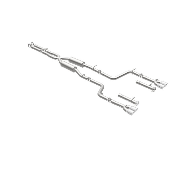 The MagnaFlow 2015-2016 Dodge Challenger Competition Series Cat-Back Performance Exhaust System 19209 brings an aggressive, attention-grabbing edge to the deep resonant exhaust note we're so well known for. This exhaust kit is designed to enhance your 5.7L 2015-2016 Dodge Challenger with dyno-proven performance made possible thanks to fast-flowing mandrel bent 2.5in. main piping and 2 Straight-Through mufflers ending in a Quad Split Rear exit with 3.5in. Polished Welded-On Double Wall Angle Cut Folded Edge tips featuring a sporty finish. The exhaust system's cat-back layout replaces your ride's exhaust system from near the catalytic converter on back. Exhaust system 19209 is engineered to make your vehicle's engine produce Aggressive exterior and Moderate interior sound levels, befitting its competition-oriented design. 19209's direct-fit design makes installation a breeze thanks to the use of advanced 3D scanning techniques. This performance exhaust system is made of 100% durable and corrosion-resistant stainless steel and produced using CNC precision robotic manufacturing, all backed by MagnaFlow's limited lifetime warranty. Please check to ensure compliance with local noise regulations.