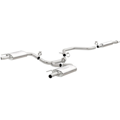 The MagnaFlow 2010-2015 Chevrolet Camaro Street Series Cat-Back Performance Exhaust System 15353 brings out the personality of your 3.6L 2010-2015 Chevrolet Camaro with our signature resonant, powerful engine tone and dyno-proven performance. Thanks to its fast-flowing, mandrel bent 2.5in. main piping and 3 Straight-Through mufflers ending in a Dual Split Rear exit with 4in. Polished Welded-On Double Wall Angle Cut Folded Edge tips, this Chevrolet Camaro exhaust kit has the performance chops to match its sporty sound and appearance. Upgrade your ride to the next level with an exhaust that has the pipes to put other Chevrolet Camaro's to shame. With this system your vehicle will be producing Moderate exterior and Mild interior sound levels while leaving other cars and trucks feeling envious at every stoplight. Exhaust kit 15353 features a cat-back layout that replaces your ride's stock exhaust components from near the catalytic converter on back. Extensive 3D scanning during development has resulted in a direct-fit design that you can easily install yourself. 15353 is produced using CNC precision robotic manufacturing techniques and is backed by MagnaFlow's 1-year limited finish warranty and limited lifetime construction warranty.