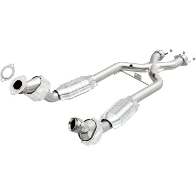 MagnaFlow HM Grade Federal/EPA Compliant Direct-Fit Catalytic Converter 93344 helps keep the check engine light off. DIY installation is easy with the proper tools (no cutting or welding required). With features including mandrel-bent tubing to eliminate flow restrictions and stainless steel construction to resist corrosion, you can have confidence in the quality of this catalytic converter. Using state-of-the-art 3D scanning systems in the design process, the MagnaFlow metrology department ensures this new part to fit and function like the original equipment. This direct-fit catalytic converter is designed specifically for the 1996-1998 Ford Mustang and interchanges with OE parts F6ZZ-5F250-UA and F8ZZ-5F250-AA. Hardware is included to eliminate the hassle of working with corroded factory parts. This replacement part is designed to meet or exceed Federal emissions requirements set forth by the EPA, complying with legal standards for OBDII Federally registered vehicles with Federal/EPA Emission systems.