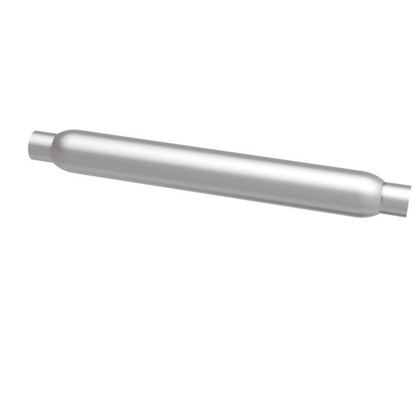 The MagnaFlow 3.5in. Round Glasspack Performance Exhaust Muffler 18145 enhances your ride with the deep, classic sound that glasspack mufflers are known for. The round muffler body features a free-flowing reversible straight-through 2.25/2.25in. diameter configuration and single stage packing with a satin finish. This weight-optimized glasspack muffler is engineered to bring out the inner hot rod in your ride with plenty of volume and dyno-proven performance, so please check to ensure compliance with local noise regulations. 18145 offers flexibility when it comes to installation thanks to its universal design, however, professional installation is recommended. Muffler 18145 is made of corrosion resistant aluminized steel and produced using CNC precision robotic manufacturing techniques, all backed by MagnaFlow's 90-day limited construction warranty.