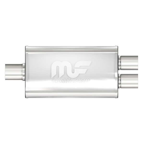 The MagnaFlow 3.5 X 7in. Oval Straight-Through Performance Exhaust Muffler 11148 is engineered to enhance your ride with a healthy helping of our signature exhaust sound and dyno-proven performance thanks to its free-flowing straight-through perforated stainless steel core wrapped in stainless steel mesh and acoustic fiber fill. The reversible, universal 2.25/2in. diameter inlet/outlet Straight-Through layout allows you to install it in whatever orientation and configuration you see fit. However, professional installation is highly recommended. Muffler 11148s weight-optimized 3.5x7x14in. oval-shaped body features a satin finish that elevates the overall aesthetics of your current exhaust setup. 11148 is made of durable, corrosion resistant stainless steel and produced using cutting-edge CNC precision robotic manufacturing techniques, all backed by MagnaFlow's limited lifetime construction warranty.