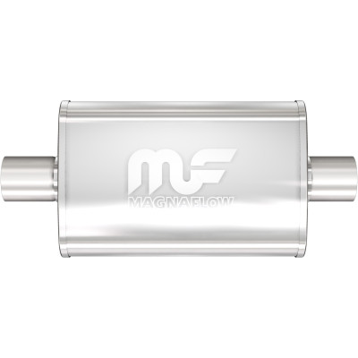 The MagnaFlow 4 X 9in. Oval Straight-Through Performance Exhaust Muffler 11254 is engineered to enhance your ride with a healthy helping of our signature exhaust sound and dyno-proven performance thanks to its free-flowing straight-through perforated stainless steel core wrapped in stainless steel mesh and acoustic fiber fill. The reversible, universal 2/2in. diameter inlet/outlet Straight-Through layout allows you to install it in whatever orientation and configuration you see fit. However, professional installation is highly recommended. Muffler 11254s weight-optimized 4x9x18in. oval-shaped body features a satin finish that elevates the overall aesthetics of your current exhaust setup. 11254 is made of durable, corrosion resistant stainless steel and produced using cutting-edge CNC precision robotic manufacturing techniques, all backed by MagnaFlow's limited lifetime construction warranty.