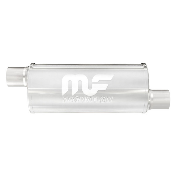 The MagnaFlow 6in. Round Straight-Through Performance Exhaust Muffler 12634 brings our world-famous exhaust sound and dyno-proven performance to your ride in a weight-optimized 6x6x14in. package with a premium satin finish. The straight-through free-flowing design of this round-bodied muffler's reversible, universal 2/2in. diameter inlet/outlet layout enables versatile installation options to match the spacing requirements of your vehicle. Due to the cutting and welding involved, professional installation is highly recommended. Internally, 12634 utilizes a perforated stainless steel core wrapped in stainless steel mesh and acoustic fiber fill to achieve a powerful, resonant tone. This muffler is made of durable, corrosion resistant stainless steel and produced using cutting-edge CNC precision robotic manufacturing techniques, all backed by MagnaFlow's limited lifetime construction warranty.
