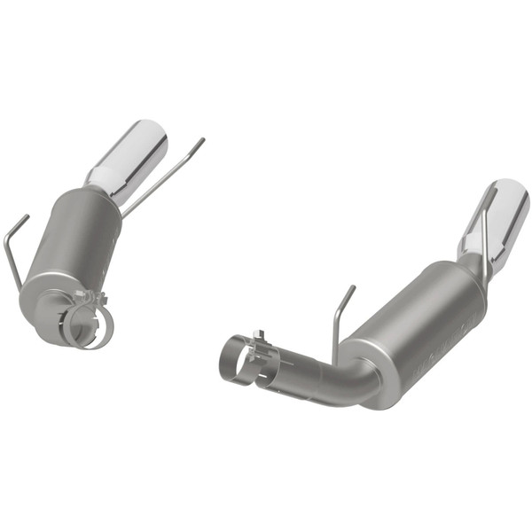 The MagnaFlow 2005-2009 Ford Mustang Competition Series Axle-Back Performance Exhaust System 16793 brings an aggressive, attention-grabbing edge to the deep resonant exhaust note we're so well known for. This exhaust kit is designed to enhance your 4.6L, 5.4L 2005-2009 Ford Mustang with dyno-proven performance made possible thanks to fast-flowing mandrel bent 2.5in. main piping and 2 Straight-Through mufflers ending in a Dual Split Rear exit with 3.5in. Polished Welded-On Double Wall Angle Cut Rolled Edge tips featuring a sporty finish. The exhaust system's axle-back layout replaces your ride's exhaust system from near the rear axle on back. Exhaust system 16793 is engineered to make your vehicle's engine produce Aggressive exterior and Moderate interior sound levels, befitting its competition-oriented design. 16793's direct-fit design makes installation a breeze thanks to the use of advanced 3D scanning techniques. This performance exhaust system is made of 100% durable and corrosion-resistant stainless steel and produced using CNC precision robotic manufacturing, all backed by MagnaFlow's limited lifetime warranty. Please check to ensure compliance with local noise regulations.