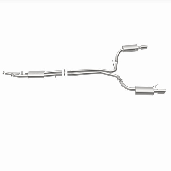 The MagnaFlow 2010-2014 Ford Taurus Street Series Cat-Back Performance Exhaust System 15769 brings out the personality of your 3.5L 2010-2014 Ford Taurus with our signature resonant, powerful engine tone and dyno-proven performance. Thanks to its fast-flowing, mandrel bent 2.5in. main piping and 3 Straight-Through mufflers ending in a Dual Split Rear exit with 4in. Polished Welded-On Double Wall Angle Cut Folded Edge tips, this Ford Taurus exhaust kit has the performance chops to match its sporty sound and appearance. Upgrade your ride to the next level with an exhaust that has the pipes to put other Ford Taurus's to shame. With this system your vehicle will be producing Moderate exterior and Mild interior sound levels while leaving other cars and trucks feeling envious at every stoplight. Exhaust kit 15769 features a cat-back layout that replaces your ride's stock exhaust components from near the catalytic converter on back. Extensive 3D scanning during development has resulted in a direct-fit design that you can easily install yourself. 15769 is produced using CNC precision robotic manufacturing techniques and is backed by MagnaFlow's 1-year limited finish warranty and limited lifetime construction warranty.