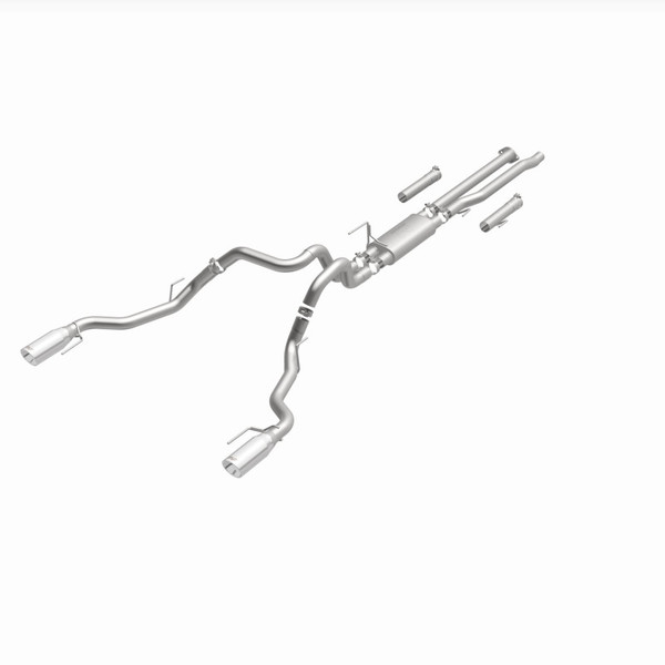 The MagnaFlow 2017-2020 Ford F-150 Street Series Cat-Back Performance Exhaust System 19346 brings out the personality of your 3.5L 2017-2020 Ford F-150 with our signature resonant, powerful engine tone and dyno-proven performance. Thanks to its fast-flowing, mandrel bent 3in. main piping and 1 Straight-Through mufflers ending in a Dual Split Rear exit with 5in. Polished Welded-On Double Wall Angle Cut Rolled Edge tips, this Ford F-150 exhaust kit has the performance chops to match its sporty sound and appearance. Upgrade your ride to the next level with an exhaust that has the pipes to put other Ford F-150's to shame. With this system your vehicle will be producing Aggressive exterior and Moderate interior sound levels while leaving other cars and trucks feeling envious at every stoplight. Exhaust kit 19346 features a cat-back layout that replaces your ride's stock exhaust components from near the catalytic converter on back. Extensive 3D scanning during development has resulted in a direct-fit design that you can easily install yourself. 19346 is produced using CNC precision robotic manufacturing techniques and is backed by MagnaFlow's 1-year limited finish warranty and limited lifetime construction warranty.