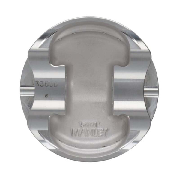 2618 Alloy Forgings: We use domestic 2618 alloy forgings, ensuring superior strength and performance.Chrome Moly Wrist Pins: Premium Chrome Moly wrist pins come standard with our Standard Series Pistons. For select SKUs, we offer wrist pin upgrades to 9310 and Turbo Tuff/DLC alloys, providing additional durability.Exacting Ring Lands and Grooves: We adhere to strict standards for piston ring lands and grooves, resulting in enhanced ring seal and more power.Cam and Barrel Profiles: Our pistons boast cam and barrel (skirt) profiles that generate substantial power while being gentle on cylinder walls.Unique Fixturing: Manley's unique fixturing allows for skirt turning and ring groove machining in a single operation, ensuring ultimate ring groove to skirt squareness.