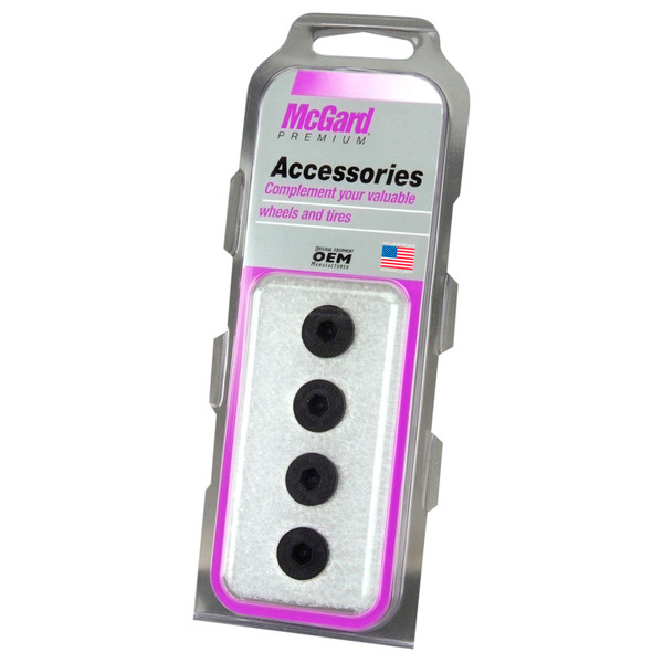 McGard black nylon plug for use with McGard Racing style lug nuts.; For street use, the plug can be left in place.; For the strip or pro street cars, unscrew the plug to allow the use of extra long NHRA approved studs. This product may contain globally sourced materials/components.