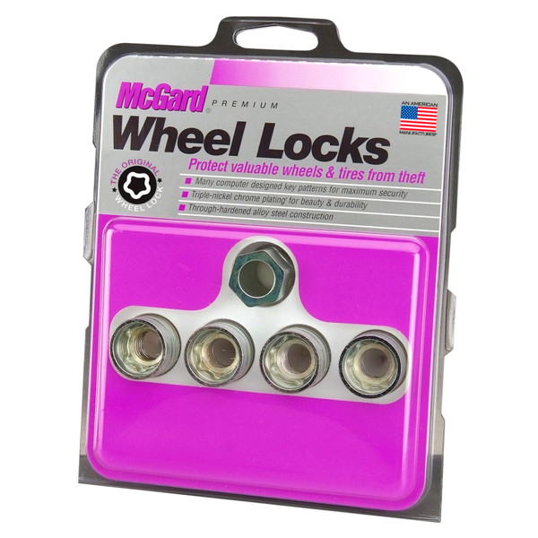 Protecting the world's finest wheels and tires from theft since 1964.; McGard manufactures wheel locks in the USA to meet or exceed O.E.M.; standards for safety and durability.; Presently, McGard is an Original Equipment wheel lock supplier to most automobile brands around the world.; These easy-to-use, one-piece wheel locks function like regular lug nuts, but require a special key tool for installation and removal.; The computer generated key designs allow for an infinite number of key patterns.; Every McGard wheel lock is fully machined from restricted chemistry steel made specifically for McGard and through-hardened for its unsurpassed level of security.; For use under wheel covers, center caps and hub caps.; This product may contain globally sourced materials/components.
