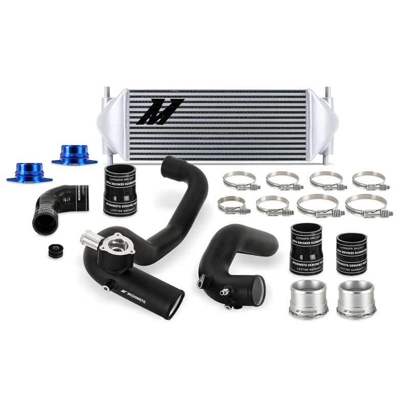 The classic Ford Bronco is an American icon, a beacon of fun, and a capable off-road vehicle to take you anywhere with the top down and wind blowing. When Ford introduced the new Bronco, it surely kept this spirit alive, but with some much-needed modern-day updates, like getting more than 5 mpg, for example. They achieved this by utilizing the EcoBoost family of engines. As great as the new Bronco is, there is always room for improvement. To give the Bronco some extra pep in its step, we’ve bundled two of our performance intercooler components to make the ultimate air-charge-cooling bundle for your 2.3L EcoBoost! The Mishimoto Performance Intercooler and Intercooler Pipe & Boot Kit bundle improves power and durability compared to the factory intercooler and pipes. The Mishimoto Performance Intercooler features a huge 4.7-inch thick core, CNC-machined 6061 aluminum flanges, and precision tig welded cast aluminum end tanks. Combined, this makes for a robust intercooler that, compared to the plastic end tank factory tube-and-fin intercooler, has far greater durability. More durability is always a good thing, but it’s even better when it’s backed up with performance. The Mishimoto Performance Intercooler and Intercooler Pipe & Boot Kit bundle reduces outlet temperatures by 21.2°F and provides an increase in flow of 7% over stock. All of this combined generates gains of 5.68 hp and 5.32 lb-ft of torque. We saw an especially good improvement in our trail simulation heat-soak testing where, after 6 back-to-back dyno runs, we still saw outlet temperatures 20°F cooler than stock. What this all means is that in the real world, whether sitting in traffic or out on the trails, you’ll see improvements in performance. All functionality of adaptive cruise control and 360° cameras are retained. As with all of our products, the Mishimoto Performance Intercooler is backed by our signature Mishimoto Lifetime Warranty.