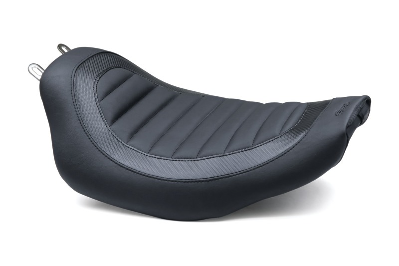 Jody Perewitz, the fastest American woman on a V-Twin, has designed this low and lean solo seat for the '82-'94 and '99-'00 FXR models. The 11.5" wide seat is built with quality in mind, drops the rider lower compared to stock, and features a marine-grade fiberglass baseplate and classic tuck & roll stitching framed by a carbon-fiber vinyl insert. Includes a fender nut for ease in installation. The convenient pocket in the seat's nose measures 3.5" wide by 6.5" deep, suitable for storing small essentials.