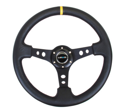 NRG Reinforced Steering Wheel (350mm / 3in. Deep) Wht Leather w/Silver Spoke & Single Yellow Mark - RST-006WT-Y