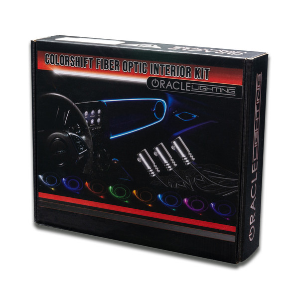 ORACLE Lighting's new Fiber Optic Interior Kits are the perfect way to accent your vehicle's dull interior in a clean and seamless way. The special side-firing fiber optic cables have an integrated edge to make installation easy on any vehicle. Using the included installation tool, insert the integrated edge between interior body panels in your vehicle including door panels, dashboard, headliner, console, and more. The power cord adapter has a switch to turn ON and OFF the lights conveniently. This is a universal product and while this is simple in most cases it is important to understand each vehicle is different and may need some installation experience to pull off the perfect install, so we recommend professional installation. How It Works: The fiber optic is end lit by a LED light head. We recommend for any length over 3' you end-light both ends of the cable for the best and brightest look. The light travels through the fiber and lights up smoothly along the way for a very clean and understated appearance. The integrated edge is designed to hold the fiber optic cable tightly without the use of any adhesive. Our ColorSHIFT(tm) option comes with a remote that allows you to select the exact color you want to use, adjust the brightness, and even do different effects like pulse, strobe, and smooth color transitions. You can also control your fiber optic interior kit using the free app called "LED LAMP." Available for Android and IOS.