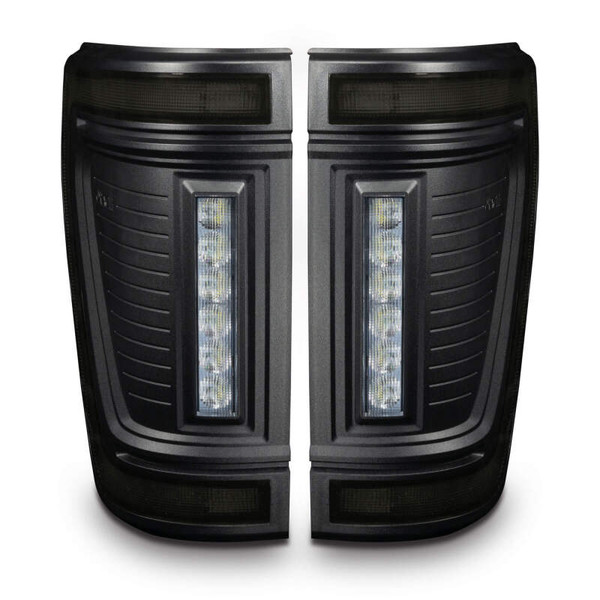 Protruding out significantly less than the factory tail lights, this low-profile design has a more streamlined appearance while also reducing the risk of tail light damage. These flush tail lights feature a unique modular design and functional LED lighting elements including high-powered reverse lights, unique signature perimeter lighting, and an animated turn signal sequence. No more problems backing up at night and no longer do you need to install additional reversing lamps onto the back of your truck to get the brightness you desire. That's because these LED reverse lights are basically a pair of LED light bars mounted into the tail light which will provide over 4,400 Lumens of rear-facing illumination! In addition to the attractive ?signature style LED lighting band and the high-output reverse light this design also features a ?dynamic turn signal effect. This ?motion or ?sequential effect is a fluid LED motion from the inside portion of the light to the outside portion of the light signifying the direction of the turn signal with a fluid animated LED sequence. These lights include wiring adapters which make them compatible with all F-150 models from 2021-2024 with or without the factory LED Option (halogen lights) and with or without the factory BLIS cross-traffic sensors. The adapters provide a true plug-and-play option without any other wiring being needed for installation. The factory cross-traffic sensors can be easily swapped over into these new lights with the original factory hardware and using our plug-and-play connectors. The new modular design allows the light to be quickly disassembled for custom painting. The Reverse Light module and Stop/Tail/Turn module can be easily removed from the black housing which can then be painted to match the body color of the vehicle to provide a more customized appearance that more seamlessly blends with the truck.