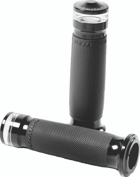 Performance Machine grips are the perfect finishing touch to any handlebar set up. The billet aluminum Vision Series Contour grips feature end mounted indicators with extremely bright yellow LED turn signals built in for maximum visibility. Each grip comes with super comfortable Renthal rubber and boasts some impressive details right down to the PM logo on the tip of each grip. These grips are designed to mount to 1 in. bars for cable throttle and electronic throttle applications with standard CAN Bus wiring systems.