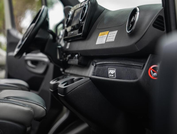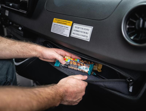 PRP’s Dash Bag for the Mercedes Sprinter Van provides tons of much needed storage, built right into your doors. The bag is designed to fit into the open slot on the dash in front of the passenger seat. The bag has a medium sized compartment that allows you to store more items, and not have to worry about them falling out onto the ground. Perfect for sunglasses, snacks, clothing, spare rags, water bottles, and anything else you may need! Constructed with durable, puncture resistant, and water resistant cordura material and rubberized zippers to prevent noise while you drive. Sold Individually. Fits 2019+ Mercedes Sprinter Van (VS30)