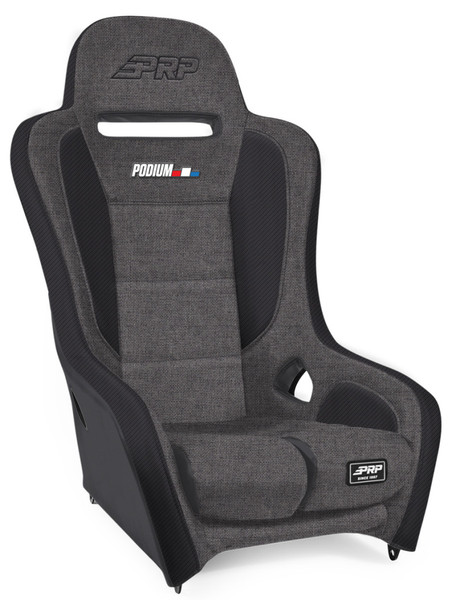 Built for Off-Road! The NEW Podium Elite Series suspension seat features a redesigned look, added lateral leg support for better containment, a thinner split bottom cushion allowing for left leg support while the right leg is extended, and larger harness openings for easier adjustments. Designed to remain comfortable after several hours in race conditions, the Podium Elite Series is our top suspension off-road race seat. This seat features a Tweed Center, with Vinyl Back and Band.