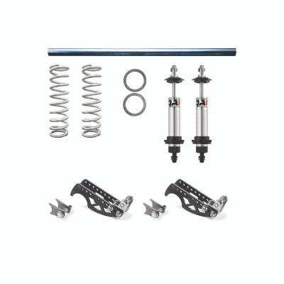 Product Overview QA1's Heavy Duty Pro Rear Systems are the perfect solution to add coilovers to your car or truck. Designed for any vehicle with a 1700-2600 lbs. rear axle weight, this kit includes all the necessary hardware and bracketry for a seamless installation. With double shear bracketry and increased spring rates, it ensures the strength and support you need for street and race applications. This simple weld-on kit features axle mount bracketry, upper shock mounts and tubing, and fully adjustable QA1 coilover shocks and springs. Ride Height Adjustability Our axle-mounted brackets offer increments of adjustment, and the coilover shock allows for fine-tuning. Combined, you will have a total of 9 of ride height adjustability, giving you full control for your desired stance. Single-Adjustable Coil-Overs QA1 single adjustable Proma Star shocks deliver exceptional ride quality and performance. With the simple turn of a dial, you can effortlessly switch between a comfortable cruise and a more aggressive feel, making them ideal for daily driving or twisty backroads. Easy, Weld-In Installation Each kit comes complete with the essential brackets, tabs, and hardware, making it a simple weld-on solution to get the job done efficiently without excess fabrication or trips to the parts store. Best In-Class Lifetime Warranty Register at QA1.net/warranty for lifetime coverage of your QA1 shocks. Made in the USA QA1's Heavy Duty Pro-Rear Systems is proudly made in Lakeville, Minnesota. Fitment Notes Welding required Designed for 3.25 axle tubes Included tubular upper shock mount dimensions are 1-5/8 diameter x .095 wall, 40 long Requires use of QA1 spanner wrench T114W or T115W