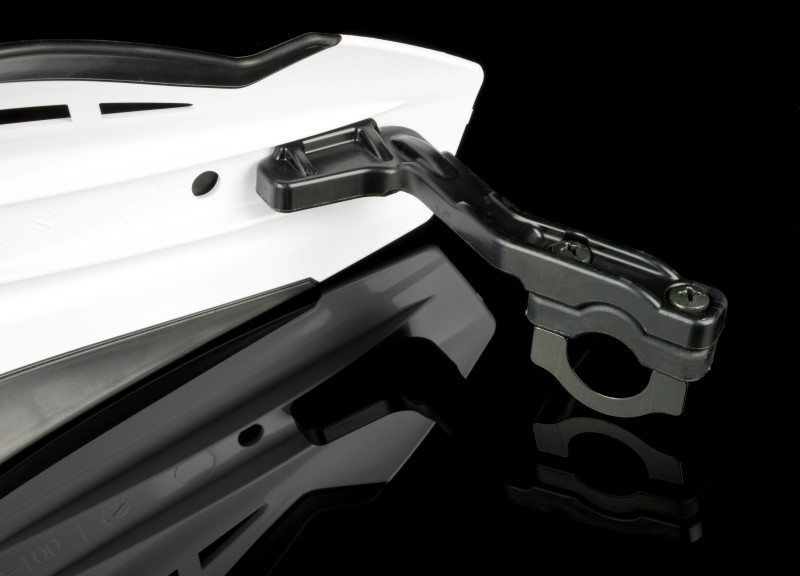Renthal Moto Handguards are designed to protect your hands against rocks and roost in a sleek and simple design without interfere with controls. Multiple mounting positions for both bracket and guards offer greater adjustability during fitment.