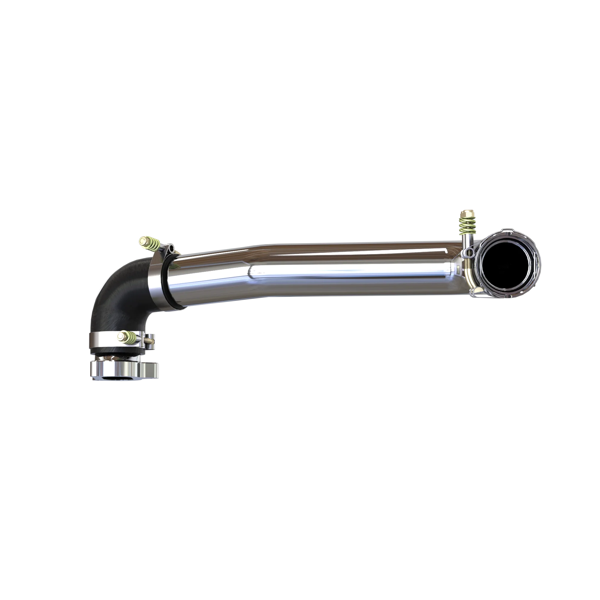 The new S&B Upper Coolant pipe for Ford Powerstroke 6.7L is built with billet ends, silicone couplers, a mandrel-bent pipe, and stainless steel t-bolt clamps. These components are far superior in quality compared to the factory plastic components. As a result, they outperform OEM coolant pipes and have a zero-failure rate.