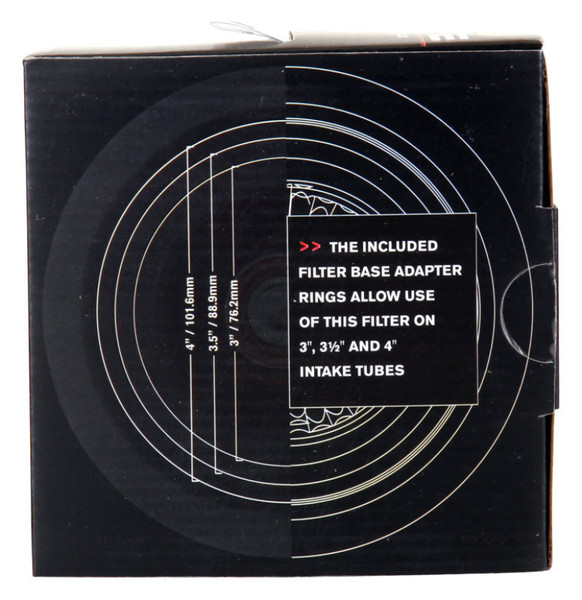 This Spectre High Performance Racing (HPR) Air Filter is a black media clamp-on cone air filter that can be used for a wide variety of applications. Using the included adapter rings, this filter can fit 3 inch, 3-1/2 inch, and 4 inch diameter tubes. Manufactured using high quality materials throughout, including oiled synthetic media, urethane, and steel mesh, this washable performance filter is precision engineered for low restriction and better performance. This filter's top houses an inverted cone filter for improved service life and enhanced flow potential. Designed with a triple chrome plated steel top and base, this 5-1/2 inch tall air filter is factory pre-oiled and ready to use.