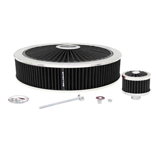 This Spectre HPR (High Performance Racing) Air Filter Top is designed to provide you with more horsepower and quicker acceleration by allowing more air flow into your engine. Use it with any 14 inch diameter air cleaner assembly. This is a premium show quality Air Filter Top from Speed By Spectre.