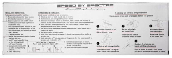 Spectre's Aluminum Air Intake Kit is a universal system that fits many vehicle applications. This air intake comes complete with a 3 inch black textured powdercoated intake tube, integrated air sensor inlets, adapters and support brackets. The Spectre filter is sold separately and may require additional components to install with this kit. This intake is not legal for use in California or other states adopting California emission standards.