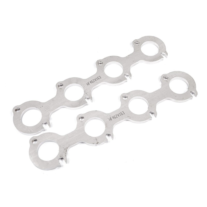 Small Block Ford 4.6L 2V, round port header exhaust flanges. These flanges come as a pair and are designed for 1-3/4" primaries, laser-cut from heavy-duty 3/8" thick 304 stainless steel for superior resistance to warping from high heat, and comes with a limited lifetime warranty.