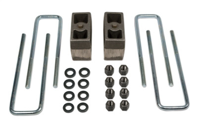 Tuff Country's block and u-bolts kits are an economical solution to raising the rear end of many trucks and SUVs. Lift blocks are inserted between the factory axle and leaf spring to lift the rear end. Each kit includes lift blocks and extended zinc plated u-bolts, custom fit for the application.