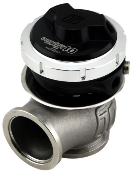 GenV CompGate40 CG for Compressed Gas and C02 External Wastegate is designed for control strategies that require a large tuning window and large pressure differentials from the top to lower actuator housings, whereas traditional actuators on poppet style gas can achieve around 2-3x base spring pressure, the CG / C02 Version is capable of extreme multiples of the base pressure through the use of additional reference signal, high-pressure gas and C02.
