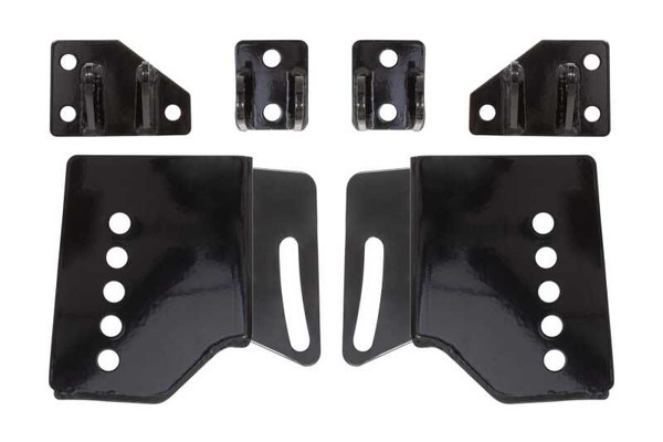 The UMI bolt-in rear coilover kit provides comprehensive adjustments for ride height, spring rate, and damping, in addition to enabling trailing arm adjustments for precise calibration of the instant center. This kit is equipped with a fortified upper mount, specifically designed to accommodate a 2-1/2” racing coilover with a double-shear configuration. The lower brackets, engineered through Finite Element Analysis (FEA), are reinforced and are designed to be bolted directly onto the existing Quick Performance rear lower control arm mounts. These brackets also feature an adjustment mechanism for trailing arm height, facilitating the tuning of the instant center location using the 3 available positions. This product is manufactured and tested in Philipsburg, Pennsylvania, utilizing materials sourced from the United States.We advise that the brackets be installed initially and that measurements be taken from center to center at ride height to guarantee the precise identification of shock part numbers. Regarding compatibility, this kit is designed for direct installation with a Quick Performance rear.