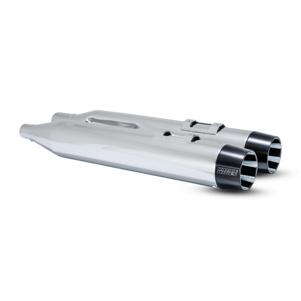 Witness the intersection of engineering precision and unparalleled style - the Blackbird 450 Slip-ons will elevate your Milwaukee-Eight Bagger to new heights of exhilaration and satisfaction. Inspired by the sleek sophistication of jet engine exhausts, the Blackbird 450s feature 4.5 in. tapering billet end caps with internally machined channels and CNC milled logo on their outer facing sides. But it's not just about looks - we've taken the roar to the next level. The Blackbird 450 Slip-ons feature our most aggressive baffle core, specially designed for Milwaukee Eight engines. Feel the thunderous resonance as you hit the open road, experiencing a symphony of power that's bound to leave a lasting impression.