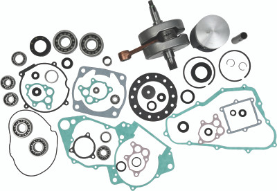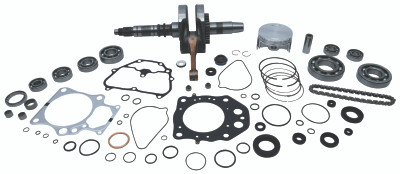 The only complete engine rebuild kit available. Kit includes Hot Rods heavy-duty crankshaft, Hot Rods counter balancer bearing kit (where applicable), Hot Rods main bearing and shaft seal kit, transmission bearing kit, and water pump rebuild kit, Vertex replica piston kit, Vertex complete gasket and oil seal kit, Hot Rods wrist pin bearing, or Hot Cams cam chain (where applicable)