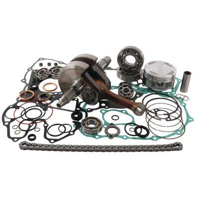 The only complete engine rebuild kit available. Kit includes Hot Rods heavy-duty crankshaft, Hot Rods counter balancer bearing kit (where applicable), Hot Rods main bearing and shaft seal kit, transmission bearing kit, and water pump rebuild kit, Vertex replica piston kit, Vertex complete gasket and oil seal kit, Hot Rods wrist pin bearing, or Hot Cams cam chain (where applicable)